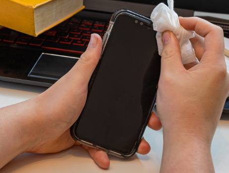 첫 번째는 알코올 기반 소독제와 부드러운 마이크로파이버 천을 사용하는 방법이에요.