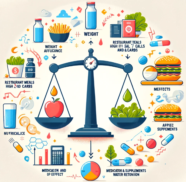 이 외에도 스트레스, 수면 패턴, 기후 변화 등 다양한 요인이 체중 변동에 영향을 줄 수 있습니다.